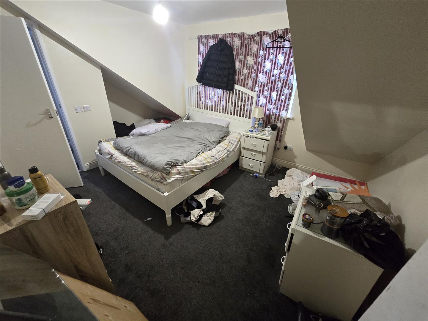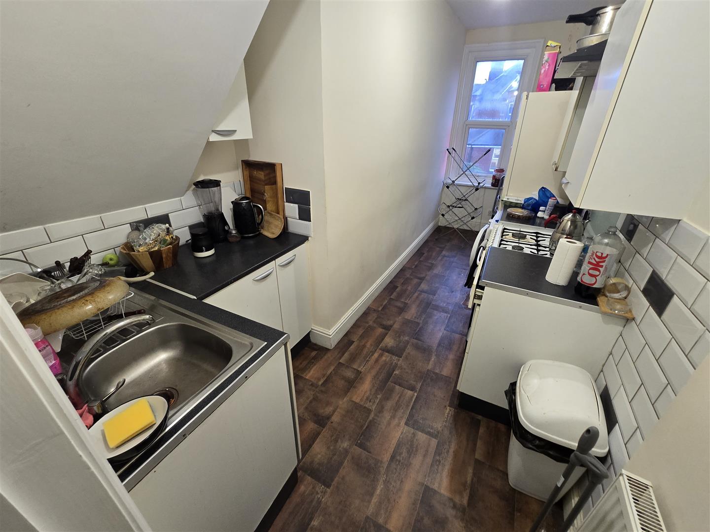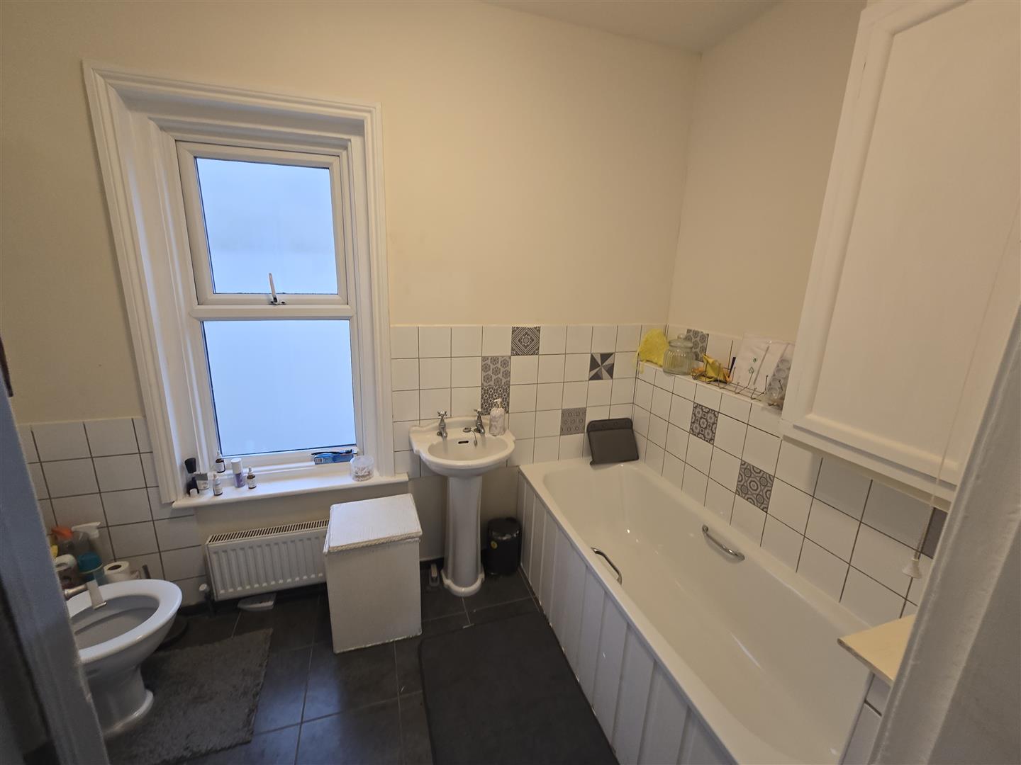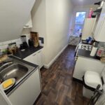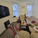 Spacious three bedrooms topfloor flat to let near Bournemouth train Station. The flat layout is over three floors. First floor accommodated a large family bathroom with bath and shower cubicle. One double room facing the backyard and to the front aspect there is the kitchen area and a separate lounge area. Upper loft area has two double ensuite rooms with dormer windows and back and front aspect, respectively. THe flat is offered furnished, gas central heating and double glazed. On the road car park and a small communal backyard.