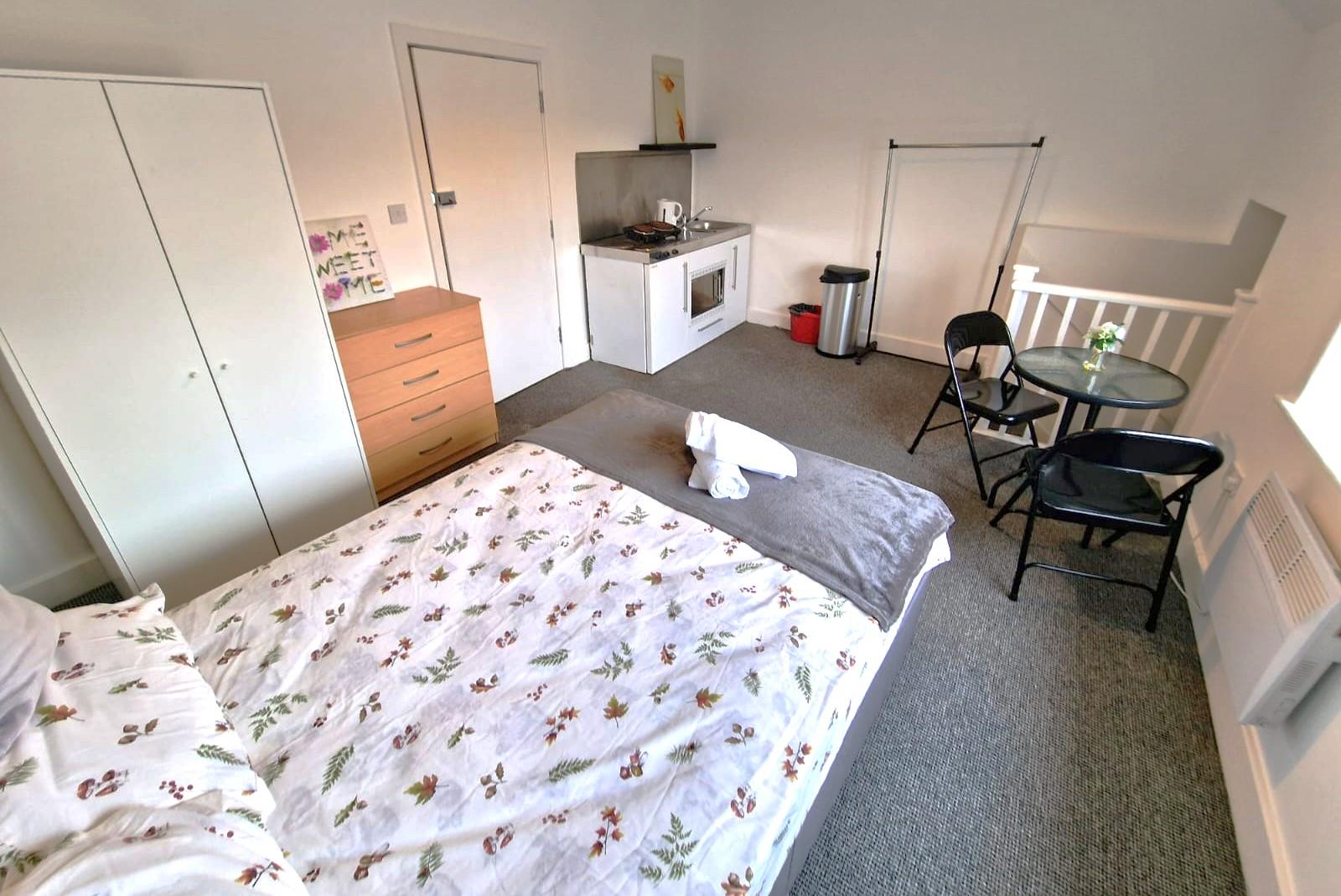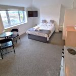 Studio Flat to let in the triangle area, near Bournemouth town centre. This unit is offered fully furnished with access to complimentary internet WIFI and laundry facilities (coin operated). The studio comprises  living space with kitchenette area and a full shower room. No Parking. Available for two sharers.