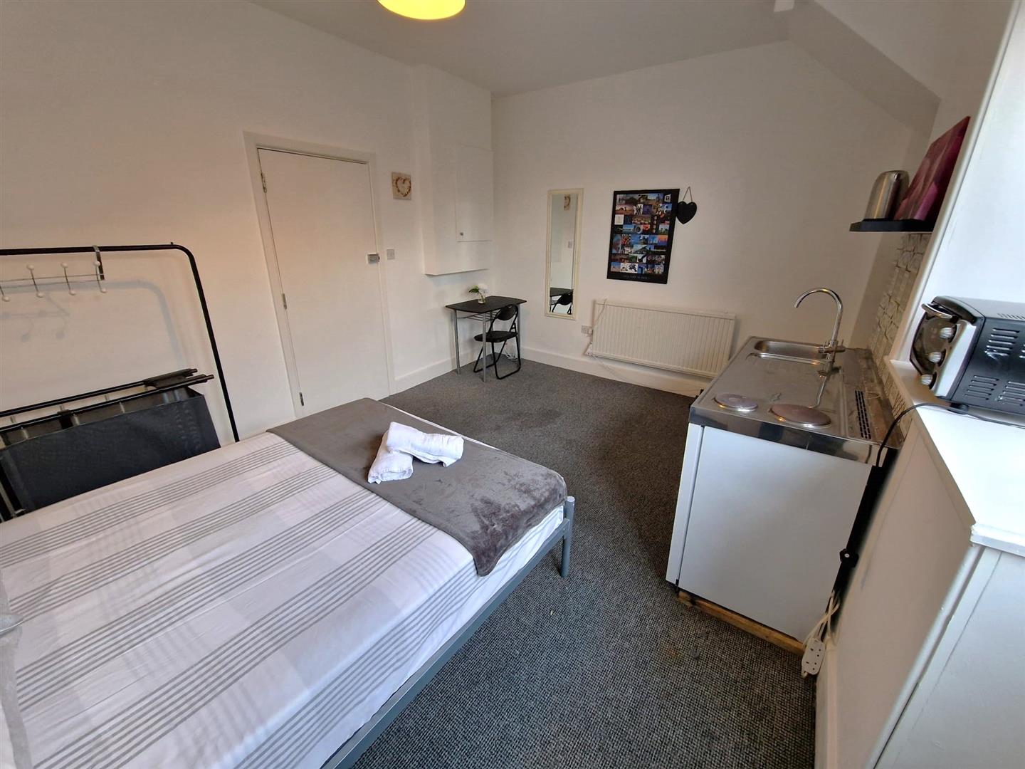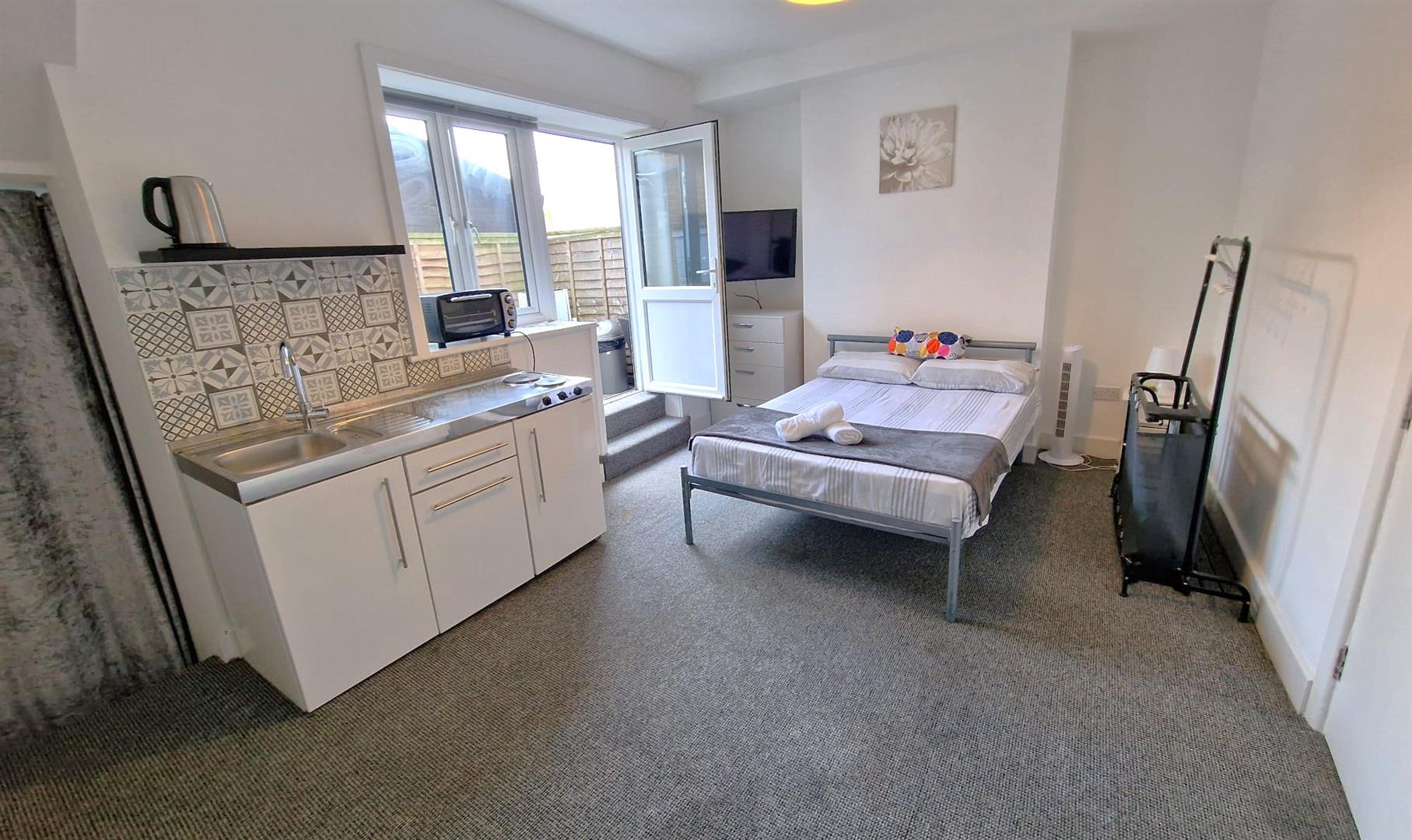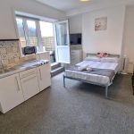 Large Studio flat with private balcony area to let in the heart of Bournemouth. Fully furnished with all appliances, double glazed and electric heating. Available for long term let for professionals or students. No car parking, but paid car park areas nearby.
